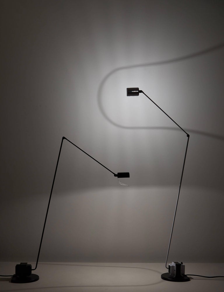 A true Lumina classic since 1975. The daphine lamp is a timeless synthesis of function and form: an articulated arm, with a pivoting diffuser, mounted on a transformer. Floor lamp in metal with an articulated arm and a diffuser pivoting on 360°. The base of cast iron always comes black varnished. Available with LED light source. Two step switch and dimmer.