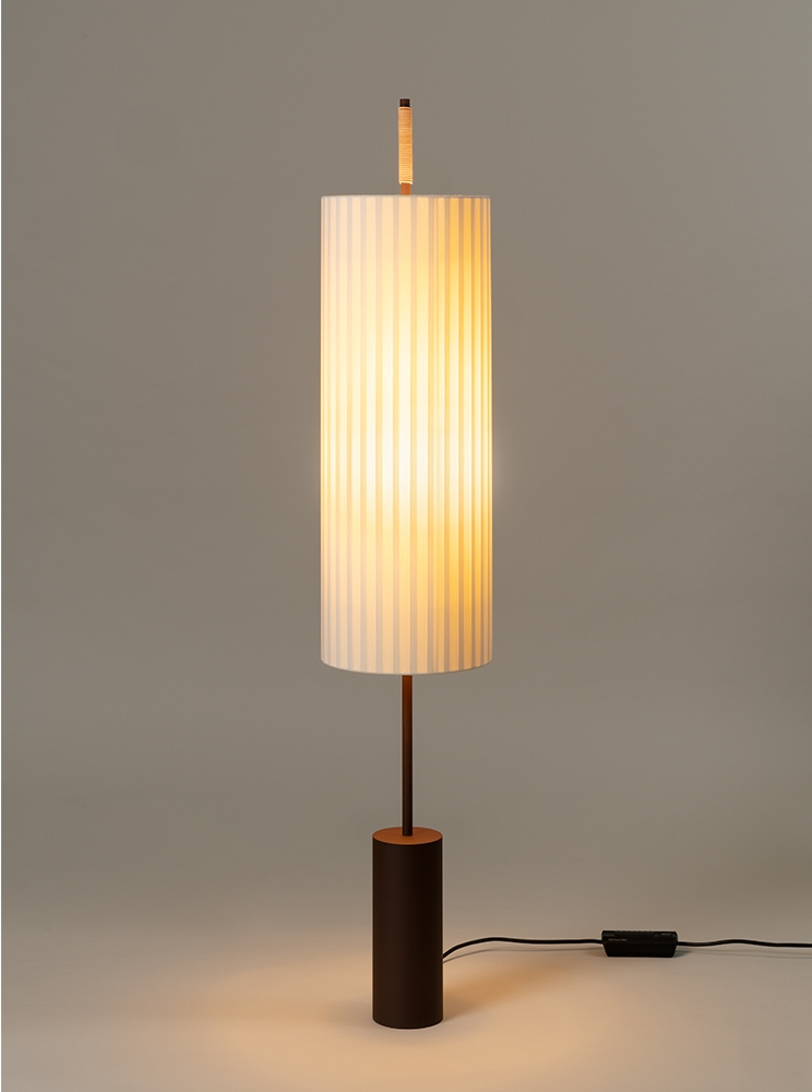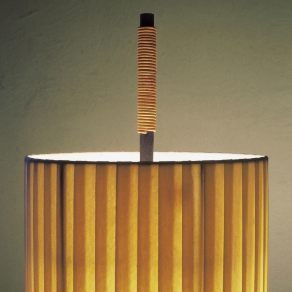 The balance of materials that make up this lamp—its cotton shade, metallic structure and stitched leather grip—are a vindication of industrial craftsmanship. With a strong presence, Dórica is an impressive lamp that evokes the classical doric column.