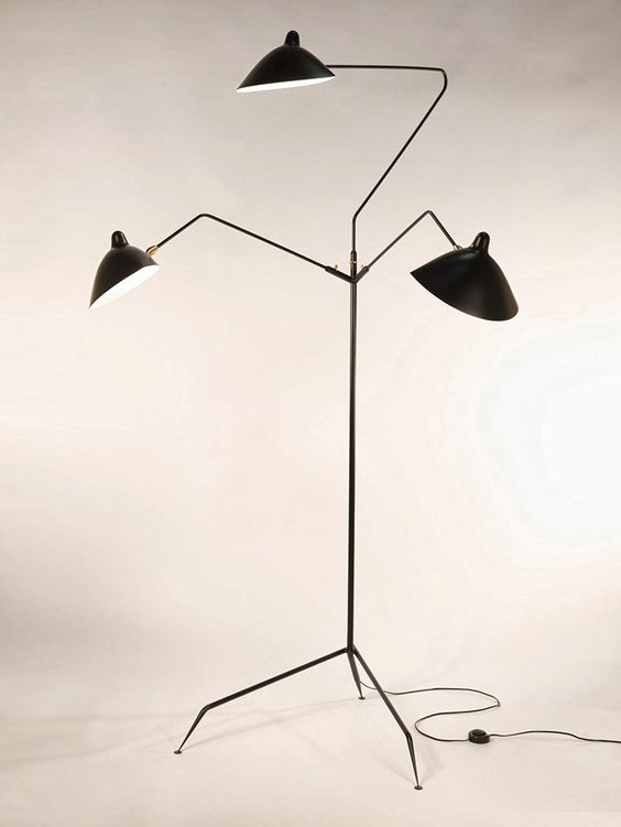 In 1953, Parisian native Serge Mouille introduced his first lighting design, the Three-Arm Floor Lamp. Drawing on his intimate knowledge of metals, as well as his interest in musculature and skeletons, the Three-Arm Lamp was both minimal and organic in form. The shape of the shades was inspired by one of his favorite things – the female form. “Lamps are there to be touched,” said the designer.